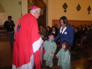 Educadoras, funcionarios de la oficina regional, los niños y sus familias, participaron de esta eucaristía, quienes además hicieron una entrega simbólica a Monseñor Goic de material educativo y otros obsequios que representan la labor de la institución sobre el trabajo con los preescolares y sus familias.