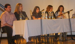 Durante el foro expusieron dos profesionales que trabajan directamente con casos de violencia y una estudiante que comentó su experiencia. Junto con ello, un psicólogo del Sernam explicó en forma didáctica la perspectiva masculina de la violencia en el pololeo. Posteriormente, una artista local interpretó la canción “Equivocada” de Thalía, como una forma de concluir la jornada.