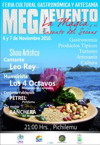 Entre el sábado 6 y domingo 7 de noviembre se realizará el Mega Evento del Secano Libertador en la Plaza Prat de la comuna de Pichilemu, evento organizado por la Cámara de Turismo de Pichilemu y la Mesa de Turismo del Programa Chile Emprende en conjunto con el Servicio de Cooperación Técnica (SERCOTEC) de la región de O’Higgins.