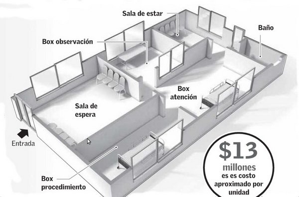 Son 11 los recintos de este tipo que se implementarán en el país, a través de una iniciativa del Ministerio de Salud, de los cuales 5 estarán en regiones y uno de ellos en la Región de O’Higgins. Tienen un costo de 13 millones de pesos y contemplan  una sala de espera, sala de atención, bob de procedimientos y box de  observación, además de calefacción y aire acondicionado, con altos standares para la comodidad de quienes acuden a ser atendidos. Para su funcionamiento se contempla un equipo compuesto por médico, enfermero y paramédico, que van a otorgar una atención mucho mejor a los enfermos de menor urgencia.