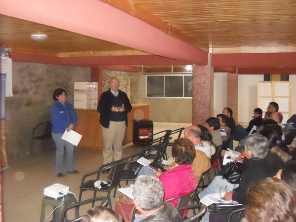 El coordinador de riego de INDAP, Claudio Díaz, expuso a los agricultores los programas de riego con que opera la institución para apoyar a los pequeños productores agrícolas. Estos son el programa de riego intrapredial, programa de riego asociativo, programa de rehabilitación de obras menores de riego, bono legal de aguas, y estudios de riego y drenaje.