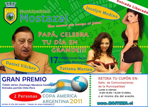 La celebración del día 17 incluye un entretenido show a cargo del destacado comediante Daniel Vilches, la vedette Tatiana Merino y Jocelyn Medina, en la animación. Junto a ellos, estarán presentes bellas modelos y bailarinas que prometen regalonear a los papás como se lo merecen en su día.
