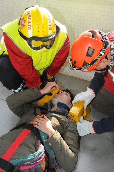 de alumnos participó como las víctimas atrapadas, debiendo ser rescatados por los voluntarios, utilizando la técnica del descenso por cuerda.