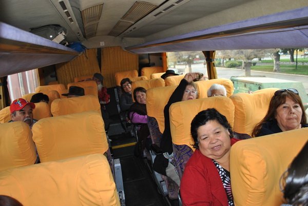 Desde la Plaza de Armas de San Fernando salieron dos buses que llevaron a este grupo de abuelitos hasta la costa de la Región del Libertador General Bernardo O’Higgins.