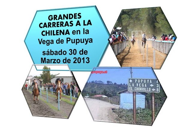A todos los amigos que son y vienen a la comuna de navidad, los invitamos a las carreras a la Chilena que se efectuaran para semana santa el día sábado 30 de marzo de 2013, en la Vega de Pupuya. Ameniza grupo Dulce Kpricho, regio casino, con baile hasta de amanecida.