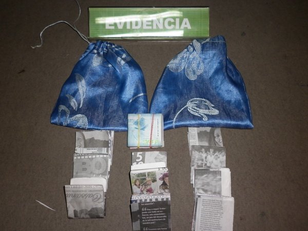 Ante esta situación, los efectivos de la SIP les realizaron una fiscalización a los dos individuos, los que portaban dos bolsas con papel recortado que simulaban ser fardos de billetes (balurdo), por lo que ambos sujetos, identificados con las iniciales N.E.O.S., de 51 años, y J.G.B.T., de 41 años, este último con antecedentes penales por estafa, fueron detenidos.