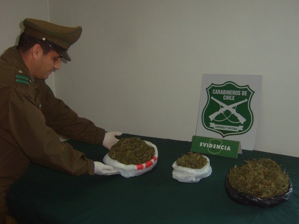 Al efectuar un registro del recinto, los efectivos policiales encontraron en una bodega ubicada en el patio dos bolsas de nylon con dos kilos 250 gramos de marihuana elaborada. “Esta droga se puede traducir en más de dos mil dosis, las que al ser comercializadas, sobre todo en esta fecha del año, puede alcanzar un valor cercano a los 3 millones de pesos”, agregó el jefe de la Sección OS-7 de Carabineros.