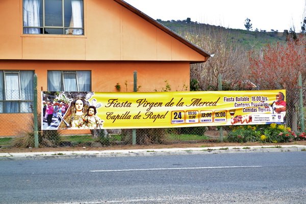 El dìa 24 de Septiembre se celebrarà la Fiesta de la Virgen de la Merced en la Capilla de Rapel de 9 AM a 11.30 Misa ,de 13 Horas Almuerzo, 15 Horas Procesiòn y un gran baile desde las 18 Horas con Cantores Populares y Comidas Tipicas de la zona