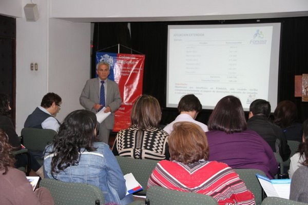 Con el propósito actualizar conocimientos en diversas temáticas relacionadas con los beneficios entregados por el Fondo Nacional de Salud (FONASA) a sus usuarios se reunieron representantes de los distintos hospitales de la red que deben tener contacto diario con usuarios que utilizan el sistema de salud pública y que son afiliados a FONASA. De igual forma en la ocasión los presentes pudieron aprender sobre la clasificación de usuarios según tramos, afiliación de trabajadores independientes, pensionados, dependientes y cesantes; garantías y procedimientos para optar a los beneficios AUGE, atención hospitalaria de libre elección y atención médica de urgencia.