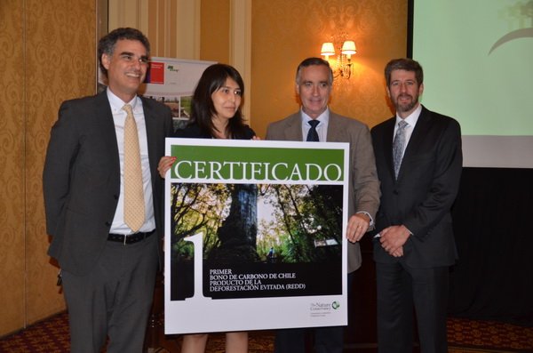 En un encuentro sobre “El Valor de los Bosques”, con representantes ambientales y empresariales, The Nature Conservancy (TNC) hizo entrega simbólica de la validación del primer bono de carbono transable en Chile al Director Ejecutivo de CONAF, Eduardo Vial Ruiz-Tagle.