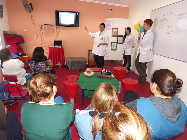 La directora de la Sala Cuna y Jardín Infantil Santa Teresita, Nicole Ruiz, quedo muy feliz con el taller efectuado en dependencias de su entidad educacional, expresando que “Para nosotros es muy favorable que se realicen este tipo de iniciativas en nuestro ente escolar, ya que pudieron asistir al taller tanto docentes como apoderados, asimismo estas oportunidades nos sirven para capacitarnos en prevención de riesgos y accidentes que puedan ocurrir inoportunamente, por otra parte debo destacar el desempeño de los internos de medicina, recogieron todas nuestras inquietudes y las aclararon de la mejor manera”.