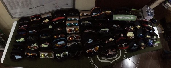 En el lugar de la detención se encontraron 90 pares de lentes de diferentes modelos que simulaban ser marcas como Oakley, Rayban y Spy, entre otras, además de 81 perfumes de diversas marcas y tamaños, 6 cajas de cartón con la leyenda Spy y 5 billeteras con la leyenda Louis Vuitton, entre otras especies.