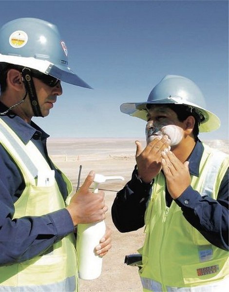 – Utilizar factor de protección solar (FPS) 30 como mínimo para todos los trabajadores expuestos y 50+ en lugares con mayor porcentaje de radiación.