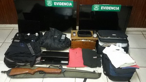 Posteriormente, Carabineros verificó el interior del vehhículo, encontrando diversas especies, entre ellas dos televisores, dos notebooks, una tables, prendas de vestir, un rifle y un celular, entre otras especies, por lo que los tres individuos, identificados con las iniciales M.I.F.T. (22), R.E.E.O. (21) y R.M.A.E. (21), fueron detenidos y puestos a disposición del Juzgado de Garantía.