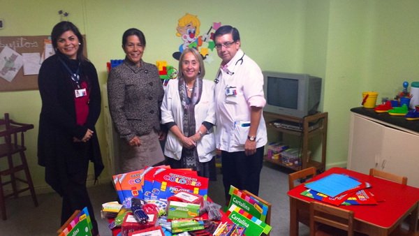Hace algunos días, la Sala de Estimulación de la Unidad de Pediatría del Hospital San Fernando, recibió una importante donación por parte de la Frutícola, Agrícola y Ganadera Orellana y Ortiz, que consistió en varias cajas con útiles escolares para los niños y niñas que se encuentran hospitalizados.