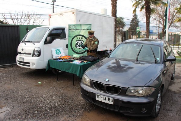 Con los antecedentes aportados por los afectados, la SIP de San Vicente, instruyó al personal de la Tenencia Coltauco y del Retén Idahue para que realizaran patrullajes por el sector para dar con el paradero de ambos vehículos -un camión ¾ y un automóvil marca BMW-. Esto permitió que momentos después los uniformados les dieran alcance en la zona céntrica de la comuna de Coltauco, trasladando a los tres ocupantes del camión y al conductor del auto hasta la Tenencia.