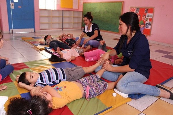 Una motivadora forma de establecer un vínculo de afecto están realizando las trabajadoras del jardín infantil Mundo Nuevo de San Fernando, mediante la realización diaria de masajes en los pies de niños y niñas que asisten al establecimiento.