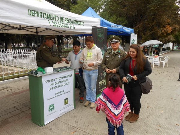 En el marco del Plan Anual de Difusión, elaborado por el Departamento de Reclutamiento y Selección P.6., y con motivo del octogésimo noveno Aniversario de la Institución, la Oficina de Postulaciones de San Fernando, realizó actividades de difusión en la Plaza de Armas de San Fernando y Terminal de Buses de esta ciudad.