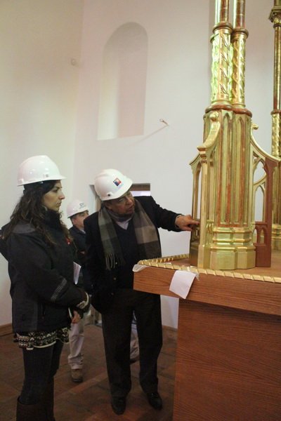 “La obra ya está en su etapa final. Es un proyecto que ha tenido un desarrollo acorde a lo planificado, con algunas incorporaciones finales que surgieron producto de las demandas que fueron saliendo de consideraciones que no estaban al inicio del proyecto como es el tema de la cúpula del campanario, la reparación del retablo y el púlpito”, destacó la seremi del MOP, Natalia Sánchez.