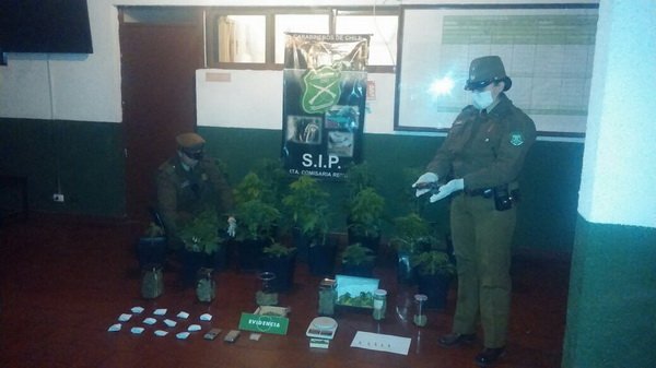 Al término del procedimiento lograron incautar 12 paquetes de marihuana elaborada, 02 bolsas nylon con la misma sustancia, 19 plantas de Cannabis Sativa, de entre 06 cm a 80 cm, además de 9 envoltorios del tipo paraguaya.