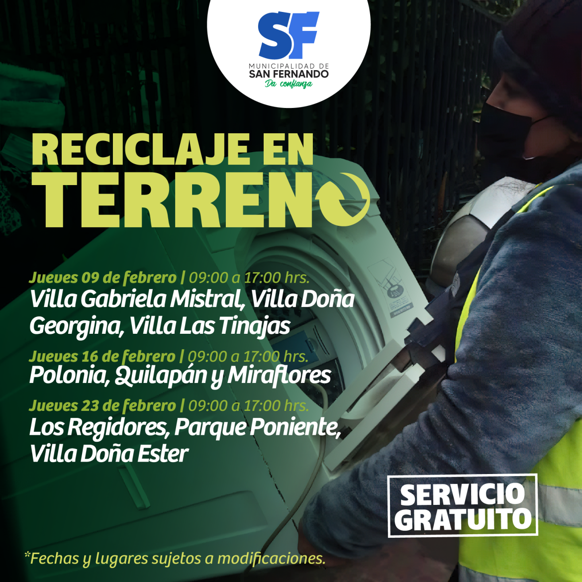 La Municipalidad de San Fernando programó para el mes de febrero, operativos de recolección de materiales en desuso, buscando fomentar el reciclaje y aportar al cuidado del medioambiente en la zona urbana y rural de la capital de Colchagua.