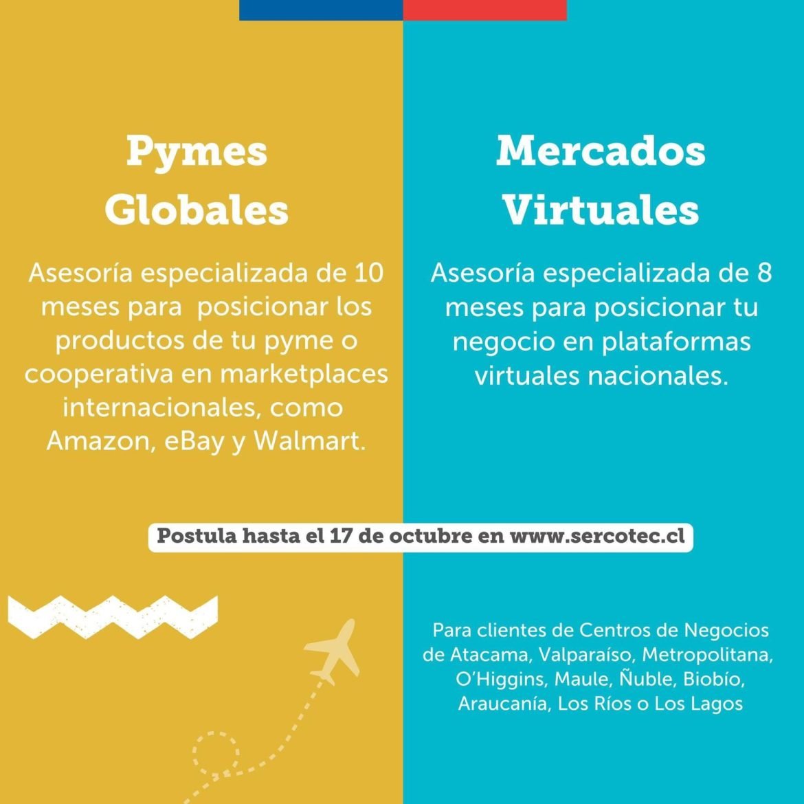 Más de 100 pequeñas empresas accederán a asistencia técnica especializada a través de los programas Pymes Globales y Mercados Virtuales de Sercotec para posicionar sus negocios en e-commerce locales e internacionales. Se puede postular hasta el 17 de octubre.