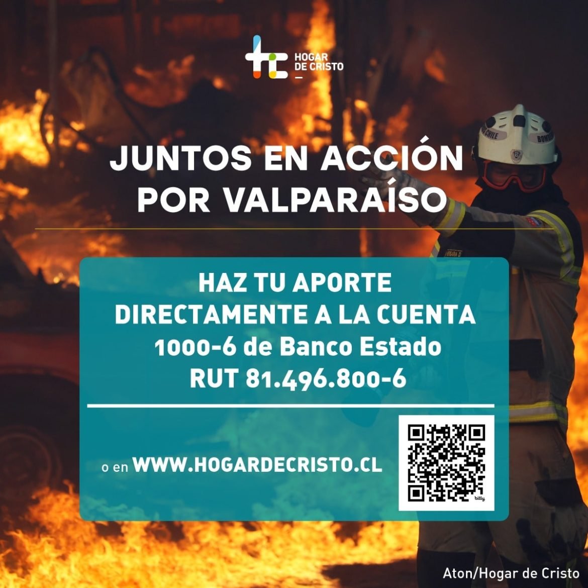 Quienes quieran sumarse a la campaña “Juntos en Acción por Valparaíso” pueden hacer su donación en www.hogardecristo.cl o en la cuenta corriente 1000-6 Banco Estado | RUT 81.496.800-6. Cada acción, grande o pequeña, cuenta en estos momentos de crisis. ¡Involúcrate!