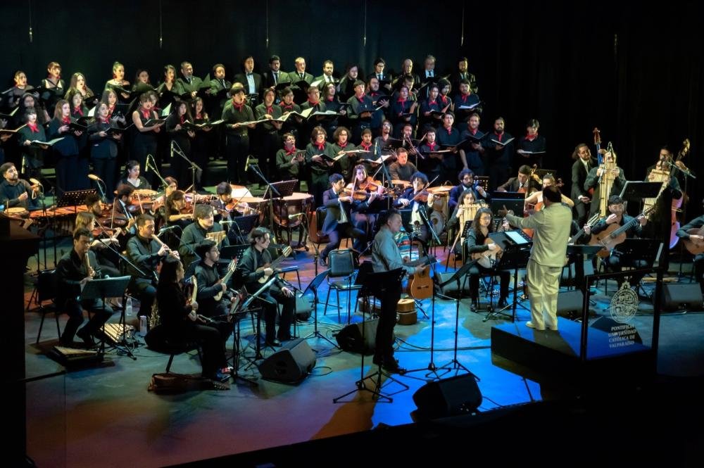 La Orquesta Andina PUCV, el Coro de Cámara y el Coro de Estudiantes del Instituto de Música (IMUS) interpretaron temas de Violeta Parra, Víctor Jara y Patricio Manns, entre otros artistas emblemáticos.