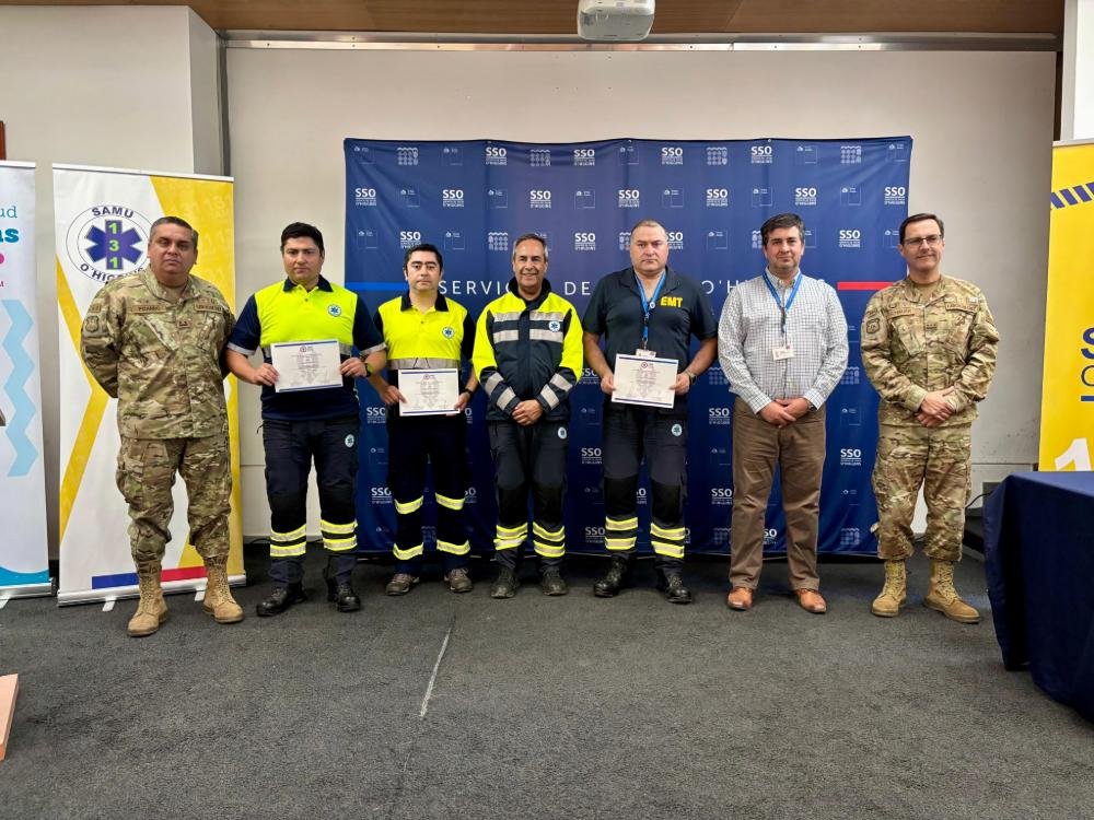 Además, se entregó un reconocimiento al equipo de relatores y monitores que impartieron las capacitaciones, los TENS Francisco Gatica, Enzo Maldonado, Víctor Torres, Carolina Meriño (Base Rancagua), Carolina Lara y Lucy Contreras (B. Pichilemu); y los reanimadores Oscar Rubio, Constanza Lavín, Maximiliano Pizarro (B. Rancagua), Cristian Abarca (B. Pichilemu), Barbara Peralta y Dominique Duchens (B. Santa Cruz).