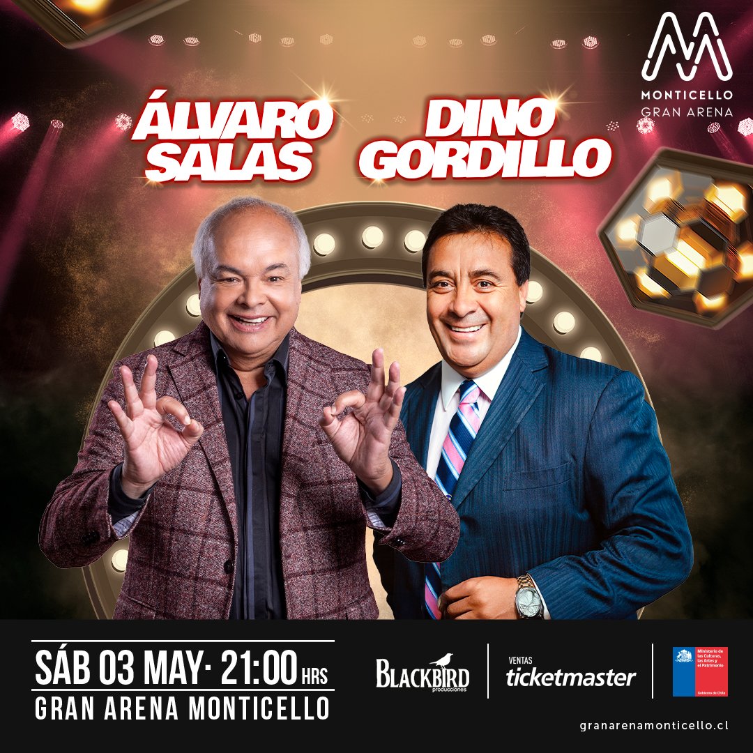 El humor tradicional regresa a los escenarios de la mano de dos destacados humoristas; Álvaro Salas y Dino Gordillo, quienes debutarán en Gran Arena Monticello el próximo sábado 3 de mayo desde las 21.00 horas, llenando de nostalgia y humor el recinto. Las entradas están  a la venta por el sistema Ticketmaster.