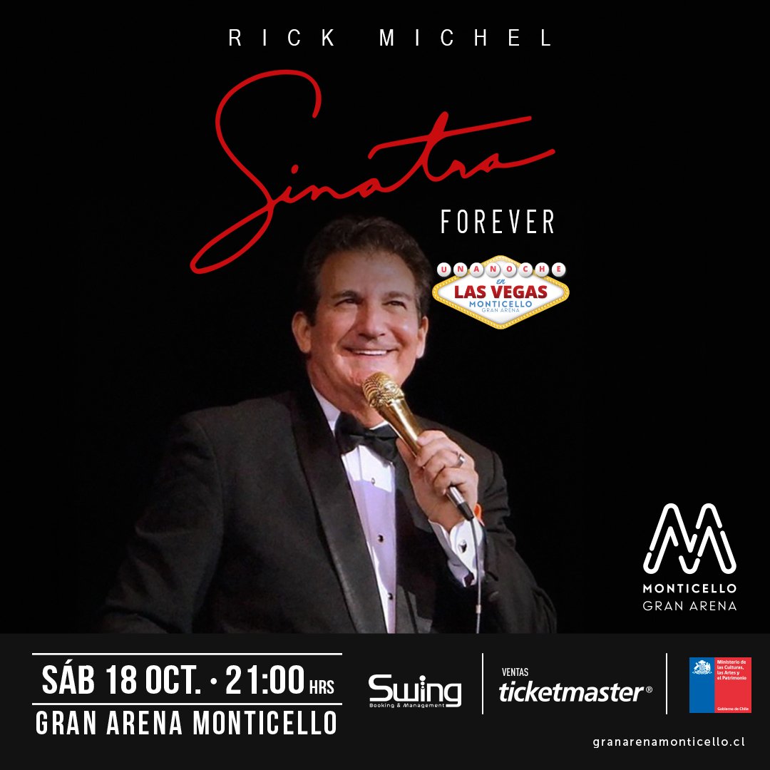 El próximo sábado 18 de octubre llega a Chile un espectáculo imperdible y de reconocida fama internacional: Sinatra Forever por Rick Michel. El concierto es un saludo al ídolo internacional, considerado el mejor cantante de todos los tiempos, Frank Sinatra, en una inolvidable noche que rinde homenaje a toda su trayectoria. No se trata de una imitación, sino de una interpretación a cargo del maestro norteamericano Rick Michel.