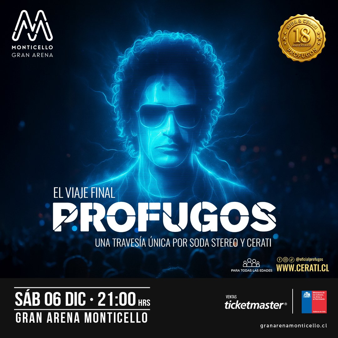 A lo largo de estos 18 años, Prófugos ha conquistado escenarios emblemáticos como Movistar Arena, Teatro Caupolicán, Quinta Vergara y el propio Gran Arena Monticello, consolidándose como el espectáculo homenaje más destacado de Latinoamérica. Ahora, regresa a uno de sus recintos favoritos para abrir un nuevo capítulo en su historia junto a miles de fanáticos.