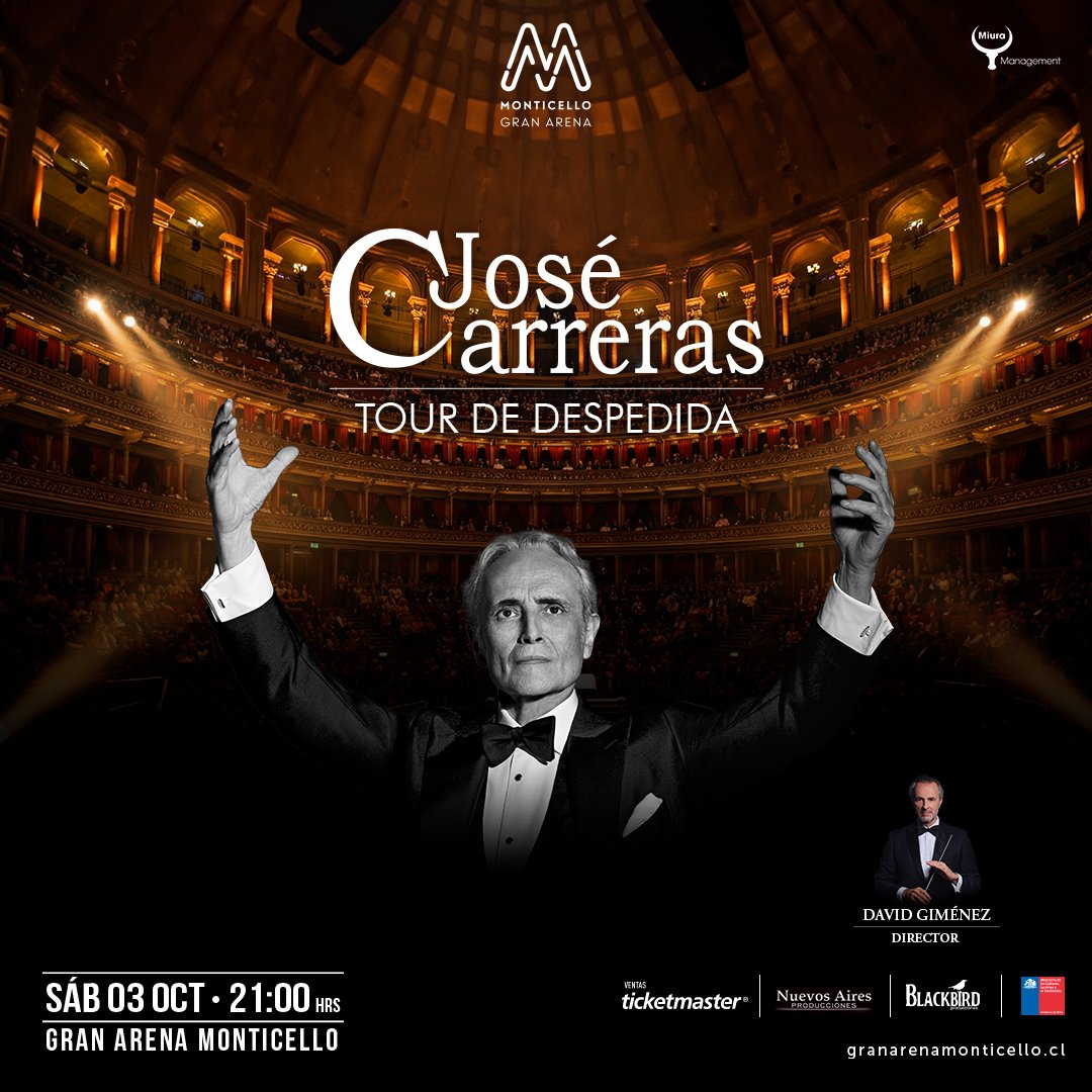 José Carreras, destacado tenor catalán, regresa a nuestro país en el marco de la gira de despedida que está realizando por importantes ciudades del mundo. El oriundo de Barcelona llegará por primera vez a Gran Arena Monticello el próximo sábado 3 de octubre, donde realizará un espectáculo lírico de primer nivel. Las entradas se pondrán a la venta desde el jueves 2 de abril, por Ticketmaster desde las 11.00 horas.