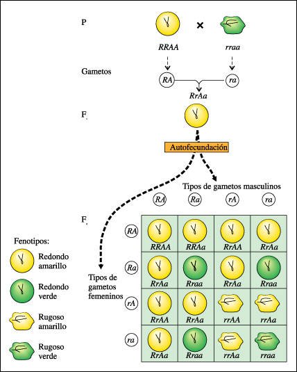 (rr) y verdes (aa). Toda la generación Fl tiene semillas redondas y amarillas