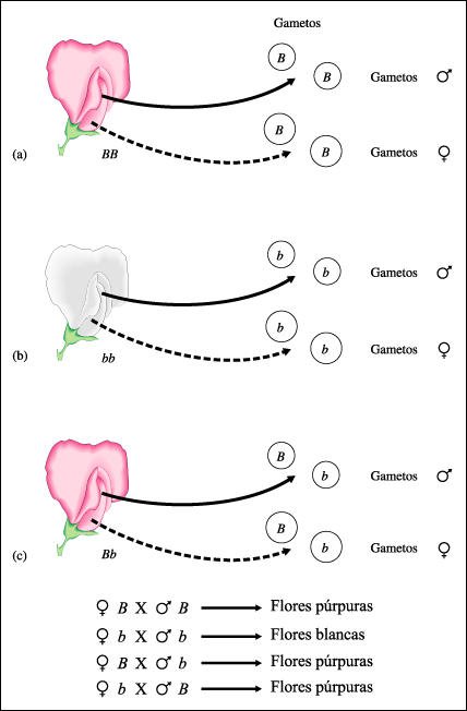 produce gametos, ya sean femeninos o masculinos, con el alelo para flor púrpura