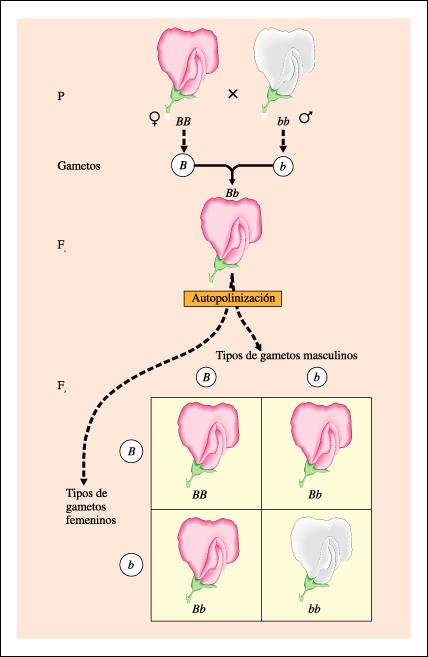 F1 y F2 después de un cruzamiento entre plantas de la generación