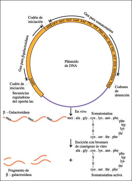 Un gen para somatostatina sintetizado artificialmente se fusiona con el gen