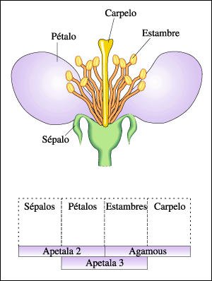 los genes Apetala2 y Apetala3 siguen la ruta del desarrollo que culmina en pétalo.