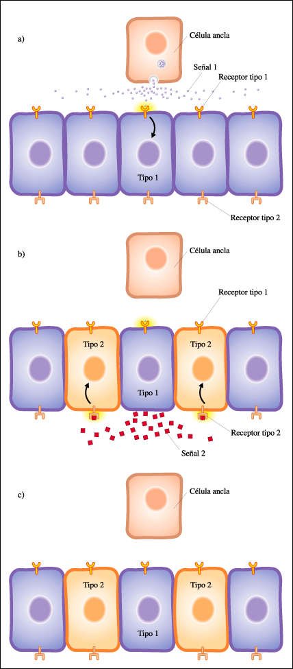 cambio en las células vecinas. Éstas, como respuesta a la señal,