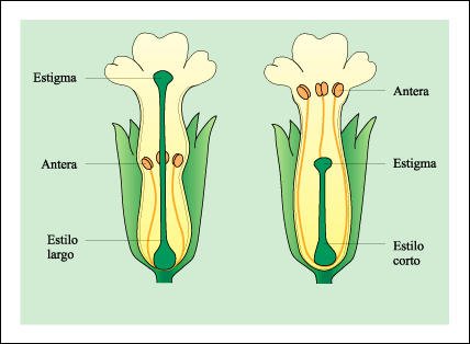 estilo largo y el estigma de la flor con estilo corto, se encuentran a la misma