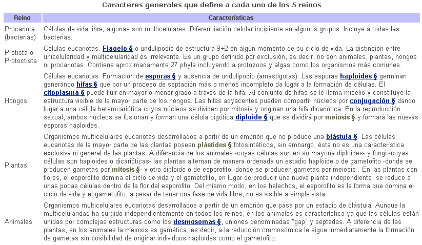 e invertebrados) y Plantae (musgos, helechos, coníferas y plantas con