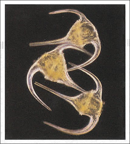 baten en planos diferentes, haciendo que el organismo gire; los dinoflagelados