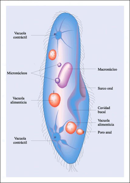 en las vacuolas se elimina a través del poro anal. Las vacuolas contráctiles