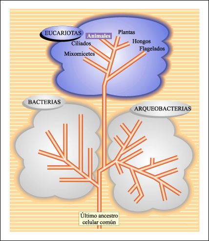 Esquema global de las relaciones evolutivas de los seres vivos.