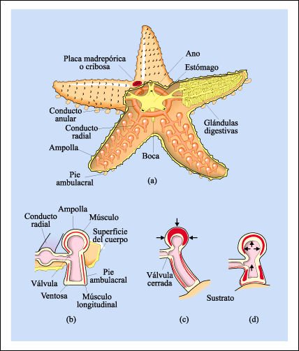 La locomoción en las estrellas de mar es llevada a cabo por el sistema vascular acuífero.