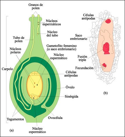 Fecundación en las angiospermas.