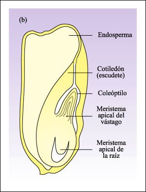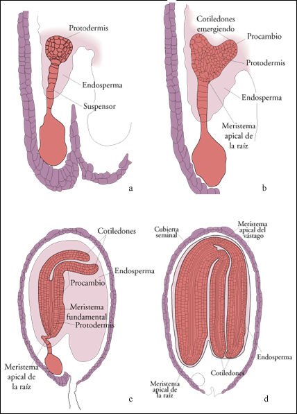 embrión maduro dentro de su cubierta seminal protectora. Los meristemas